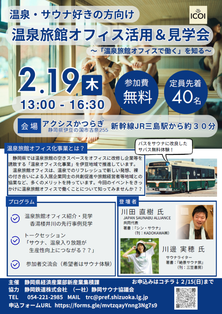 静岡県主催イベント「温泉旅館オフィス活用&見学会」を開催します!