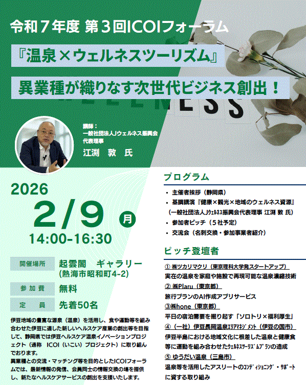 ④(一社)伊豆長岡温泉エリアマネジメント: 伊豆半島の地域文化に根差したウェルネスツーリズムプラン造成
